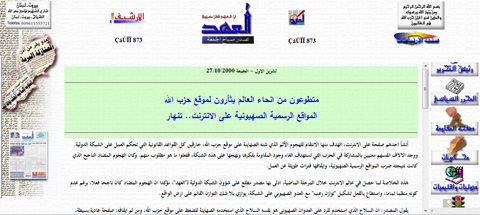 أنشأ احدهم صفحة على الانترنت، الهدف منها الانتقام للهجوم الآثم الذي شنه الصهاينة على موقع حزب الله، خارقين كل القواعد القانونية التي تحكم العمل على الشبكة الدولية. ووجد الالاف انفسهم معنيين بالمشاركة في الحرب التي تستهدف الغاء وجود المقاومة بفكرها ونهجها على هذه الشبكة، ففعلوا ما هو مطلوب منهم. وكان الهجوم المضاد الناجح الذي كانت نتيجته ضرب المواقع الرسمية الصهيونية، وايقافها فترات طويلة عن العمل.