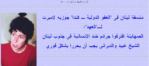 وبالمناسبة يمكنني القول انه خلال الاشهر الستة الاخيرة من السنة الماضية تلقى الاسرى اللبنانيون في السجون الاسرائيلية اكثر من اربعين الف رسالة من اشخاص في العالم يتعاملون مع منظمة العفو الدولية وهذا امر مهم جدا.